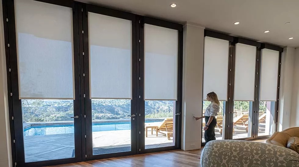 Roller Shades are an ideal match for sliding doors, providing a sleek, no-fuss solution that retracts neatly and offers exceptional light control. Their modern profile complements any room style.